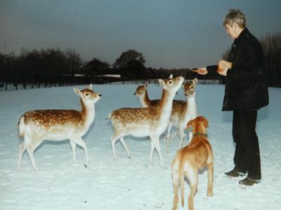 Hij was graag buiten. Van jongs af aan hebben we hem in de wei laten spelen omdat hij daaruit niet kon weglopen. Hij was voorzichtig met de paarden en vooral met de herten kon hij zich helemaal uitleven. Kilometers hebben ze met z'n allen afgelegd. Hij heeft ze nooit iets gedaan en als er brood gedeeld werd, wachtte hij netjes zijn beurt af.